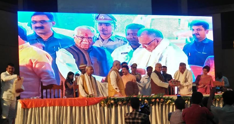 भारतीय संस्कृति उत्सव 2018 के उदघाटन सत्र के शुभारंभ हेतु पधारे गणमान्य अतिथि माननीय श्री राज्यपाल राम नाईक जी का पुष्पगुच्छ भेट कर स्वागत करते