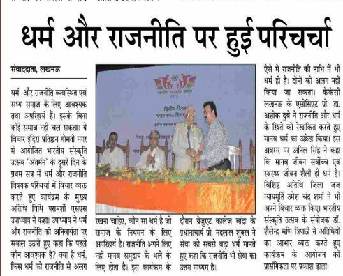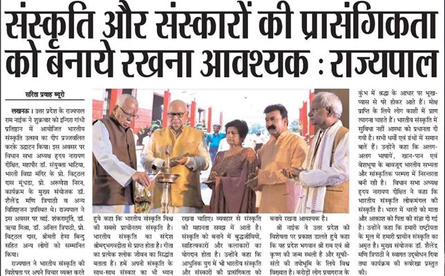 दीप प्रज्वलन माननीय राज्यपाल श्री राम नाईक विधान सभा अध्यक्ष हृदयनारायण दीक्षित, डॉ. अरुणेश निरन , महापौर श्रीमती संयुक्ता भाटिया , डॉ बी. डी.